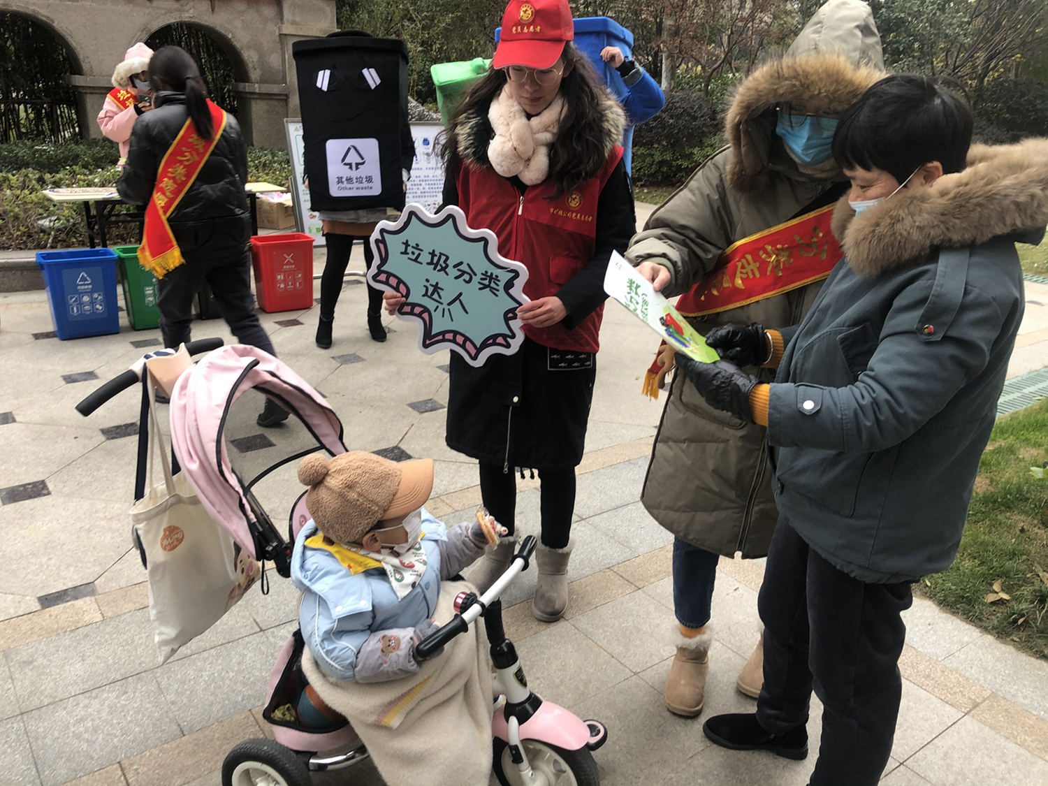 活動(dòng)中,志愿者們身穿“可回收物”、“廚余垃圾”、“有害垃圾”、“其他垃圾”四色玩偶服,通過向居民發(fā)放宣傳單頁(yè)、開展“垃圾分分樂”、“垃圾分類跳棋”游戲等方式,向其宣傳垃圾分類相關(guān)知識(shí)?;顒?dòng)現(xiàn)場(chǎng)氣氛火熱,社區(qū)居民不畏嚴(yán)寒,紛紛從家中拿出廢舊電池、舊水銀溫度計(jì)等有害垃圾換取垃圾袋。
