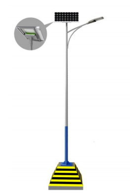 | 5 | 燈桿(含支架) | 高7米,錐型A字臂燈桿,燈臂長(zhǎng)1.2m,上口徑70mm,下口徑160mm,壁厚不低于3mm,上白下藍(lán)。 材質(zhì)采用Q235碳鋼,熱鍍鋅表面靜電噴塑,內(nèi)外表面防腐處理。 法蘭為320mm*320mm*12mm,預(yù)埋件4-M18*280*750。 |