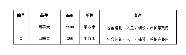 2.本次招標(biāo)進(jìn)行一次性報(bào)價(jià),報(bào)價(jià)后不得修改。最終以總價(jià)進(jìn)行評審。報(bào)價(jià)應(yīng)包含但不限于貨物采購、運(yùn)輸、裝卸、種植、養(yǎng)護(hù)及稅金等費(fèi)用,我司不再支付其他任何費(fèi)用。
