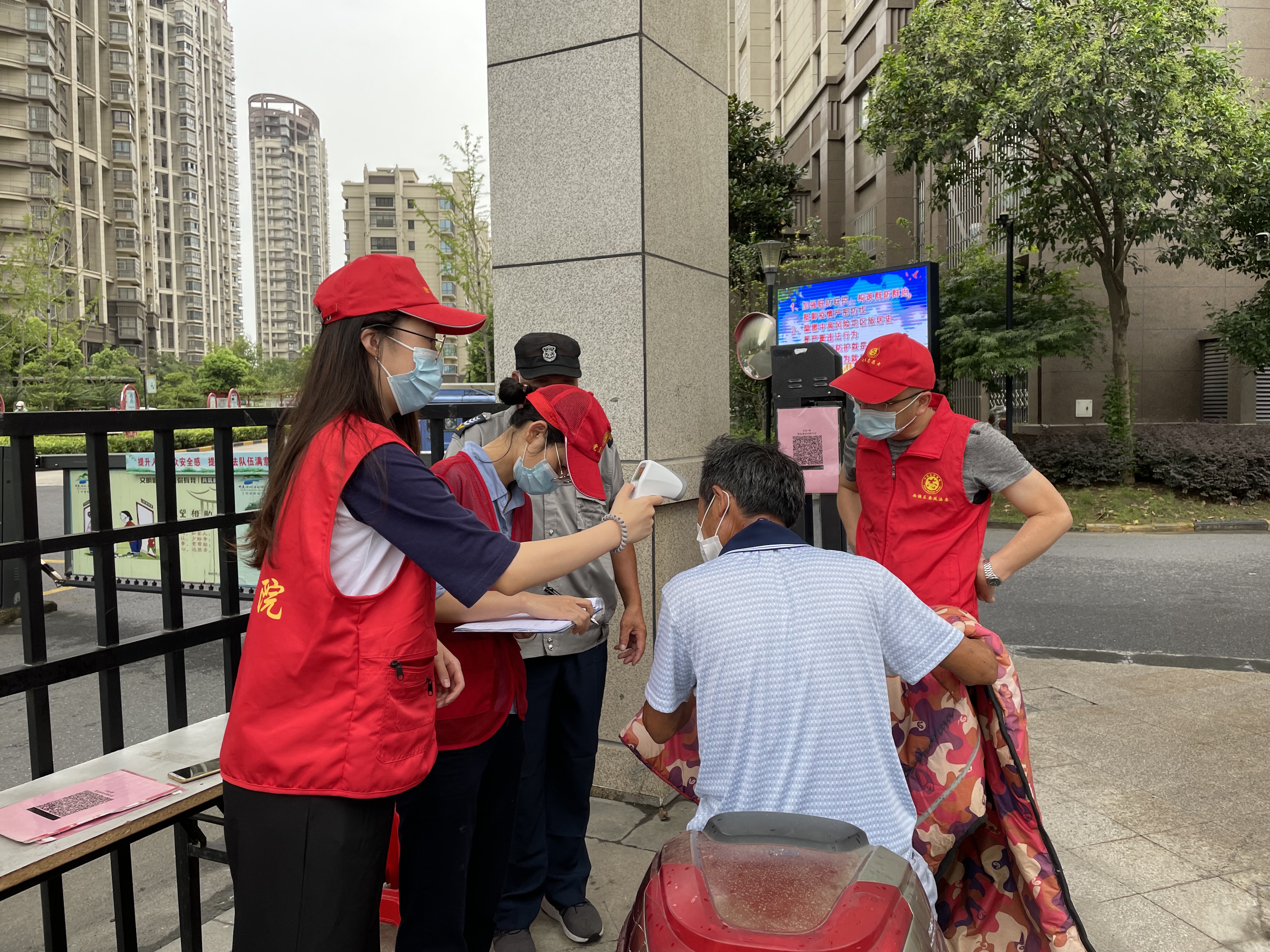 志愿者們按照防疫要求,協(xié)助物業(yè)工作人員核驗(yàn)出入小區(qū)人員,對(duì)外來(lái)人員及安康碼異常人員行程進(jìn)行核實(shí)登記,同時(shí)向小區(qū)居民宣傳疫苗接種有關(guān)信息,提醒未接種疫苗的居民盡快完成接種。