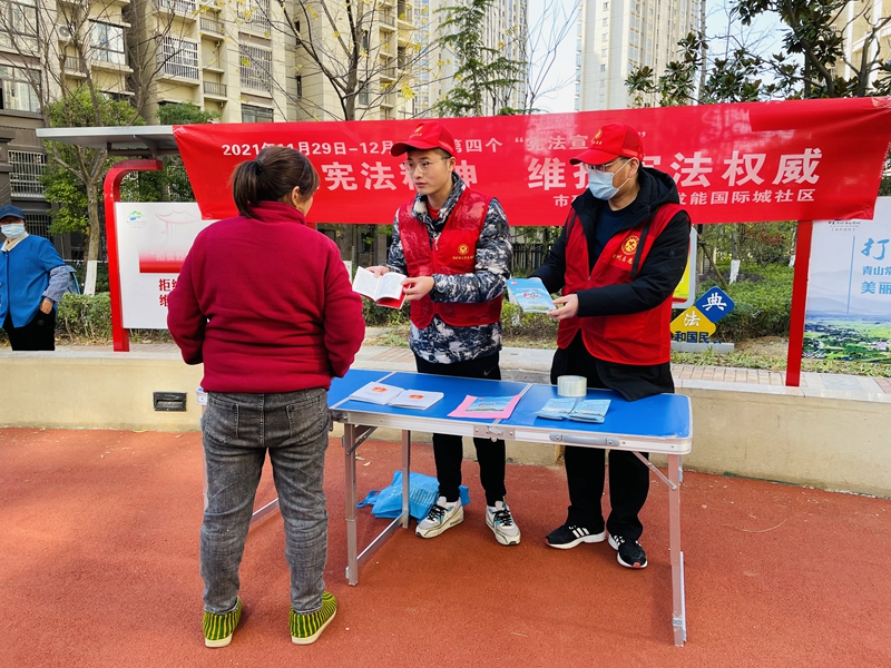 在第八個(gè)國家憲法日來臨之際,為推動(dòng)廣大社區(qū)居民學(xué)習(xí)宣傳憲法,弘揚(yáng)憲法精神,維護(hù)憲法權(quán)威,12月3日上午,市礦投公司青年志愿者深入發(fā)能國際城社區(qū)開展國家憲法宣傳活動(dòng)。