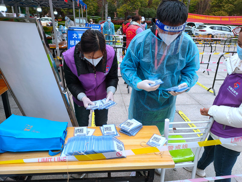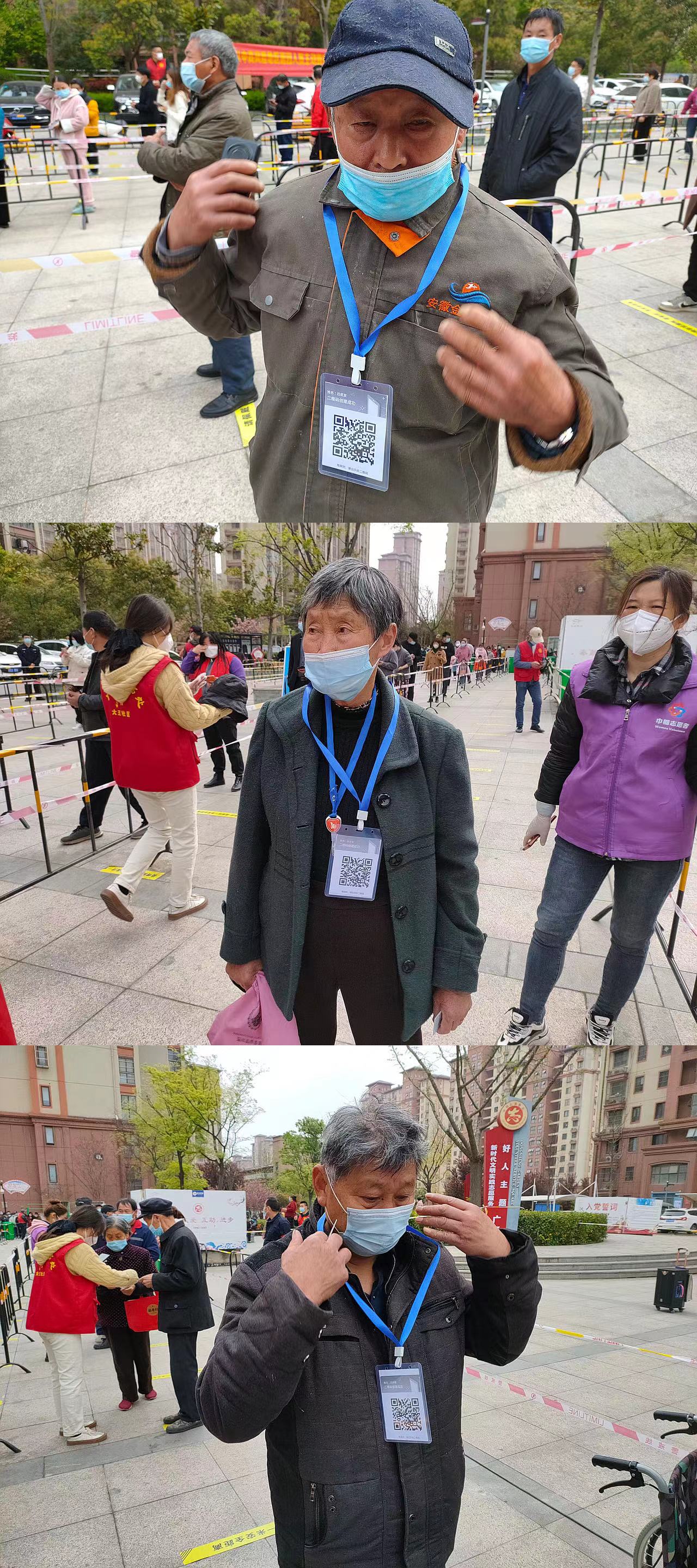 連續(xù)3天的志愿服務(wù)后,為進(jìn)一步優(yōu)化方式、提升效率,志愿者們利用1天短暫休息時(shí)間,收集所有手機(jī)中錄入形成的核酸檢測(cè)碼并分別打印制作成胸牌,于翌日分發(fā)至每位老人手中,有效減少了老人等待時(shí)間較長(zhǎng)、人員易聚集等現(xiàn)象,從源頭上解決問題,讓“綠色通道”更加暢通,讓參加核酸檢測(cè)的老人體會(huì)到更加貼心、更高效率的志愿服務(wù)。