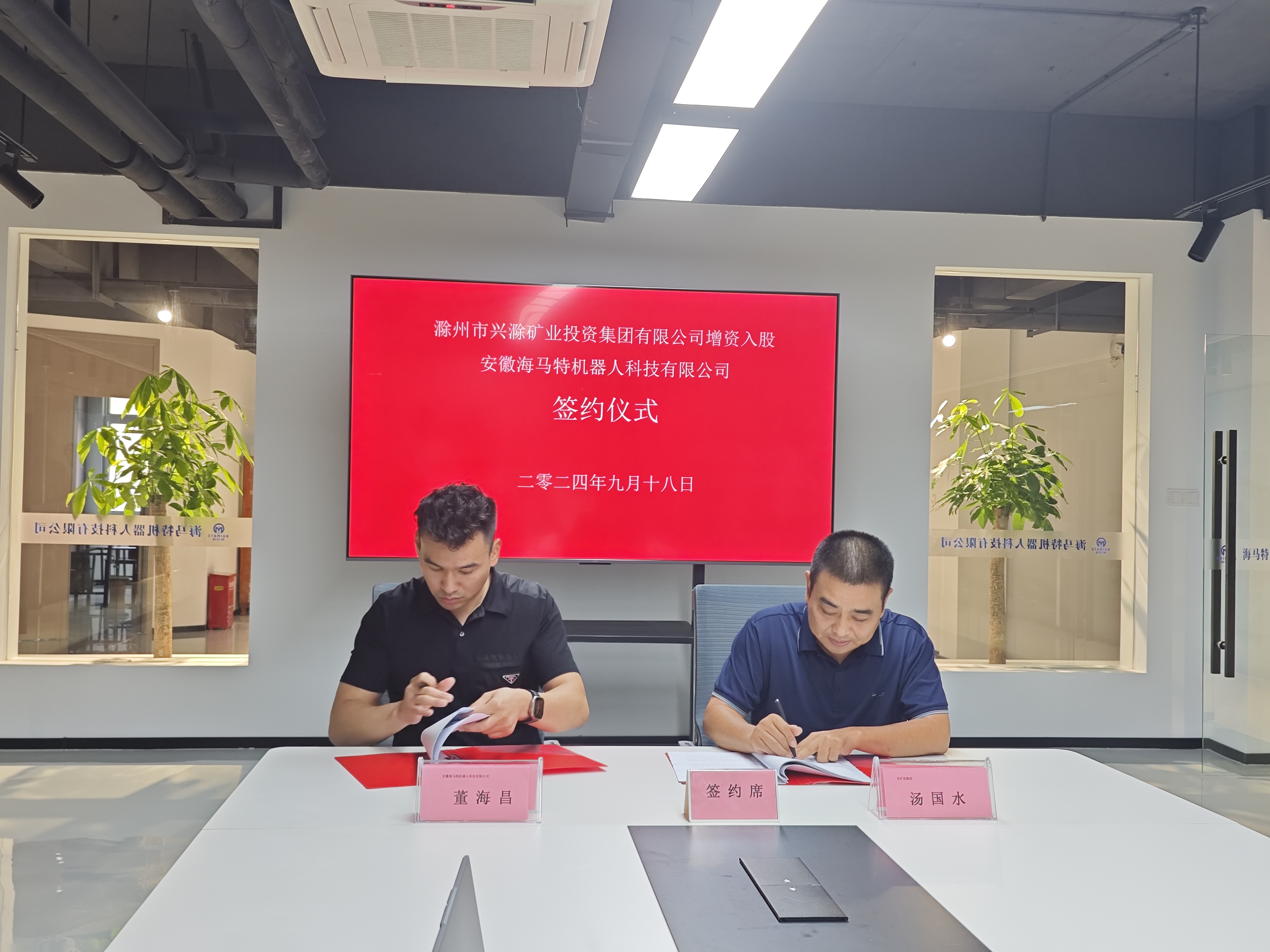 9月18日下午,市礦投集團(tuán)增資入股安徽海馬特機(jī)器人科技有限公司簽約儀式在天長市舉行。市礦投集團(tuán)黨委委員、副總經(jīng)理湯國水出席簽約儀式并講話,天長市科技局、滁州市創(chuàng)新驅(qū)動(dòng)發(fā)展研究院、中國科學(xué)技術(shù)大學(xué)火災(zāi)科學(xué)國家重點(diǎn)實(shí)驗(yàn)室等相關(guān)部門負(fù)責(zé)人參加本次簽約儀式。