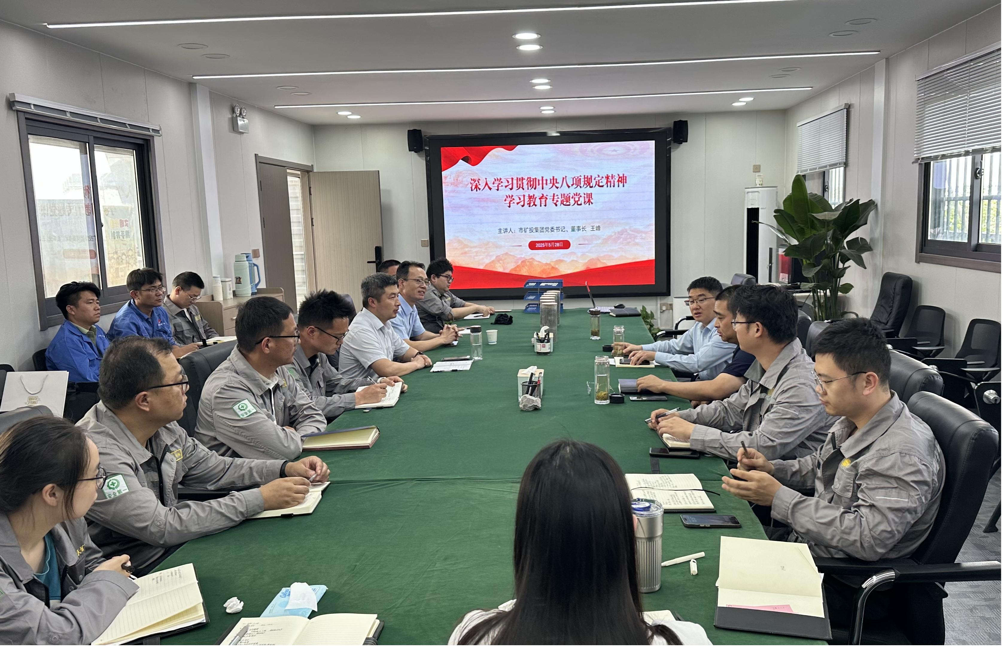 王峰結(jié)合反面典型案例在各子公司講授深入貫徹中央八項(xiàng)規(guī)定精神學(xué)習(xí)教育專題黨課,系統(tǒng)闡釋中央八項(xiàng)規(guī)定精神的時(shí)代內(nèi)涵與實(shí)踐要求。他指出,中央八項(xiàng)規(guī)定是新時(shí)代全面從嚴(yán)治黨的“金色名片”,必須以“永遠(yuǎn)在路上”的韌勁常抓不懈。針對黨員干部,他提出三點(diǎn)要求:一是提高政治站位,嚴(yán)守紀(jì)律紅線,在礦石銷售、物資采購等關(guān)鍵崗位上知敬畏、存戒懼、守底線;二是領(lǐng)導(dǎo)率先垂范,支部委員要帶頭轉(zhuǎn)作風(fēng)、樹新風(fēng),在安全生產(chǎn)、降本增效中作表率;三是聚焦主責(zé)主業(yè),將作風(fēng)建設(shè)與企業(yè)發(fā)展深度融合,以過硬作風(fēng)推動(dòng)企業(yè)發(fā)展。